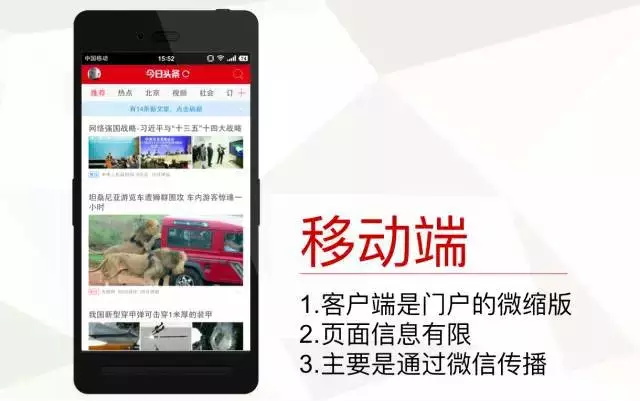 我們今天在移動(dòng)端做內(nèi)容時(shí),首先要對(duì)不同傳播平臺(tái)的傳播特質(zhì)有一個(gè)大致的了解,因?yàn)椴煌瑑?nèi)容放在不同平臺(tái)上,傳播效果完全不同。因?yàn)槲易隽耸嗄甑膫鹘y(tǒng)媒體,而且我們一些同事原來(lái)有過(guò)媒體經(jīng)驗(yàn),所以還會(huì)講到報(bào)紙、雜志的傳播特征。